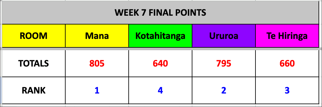 After holding the top attendance spot for two weeks, Ururoa House was knock off by Mana, who achieved an impressive 72% regular attendance. The house competition is definitely heating up!