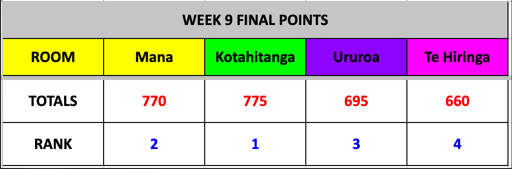 Our winning house last week with the most points collected was Kotahitanga!