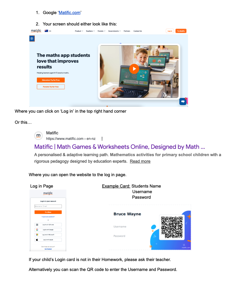 MATIFIC LOGIN INSTRUCTIONS