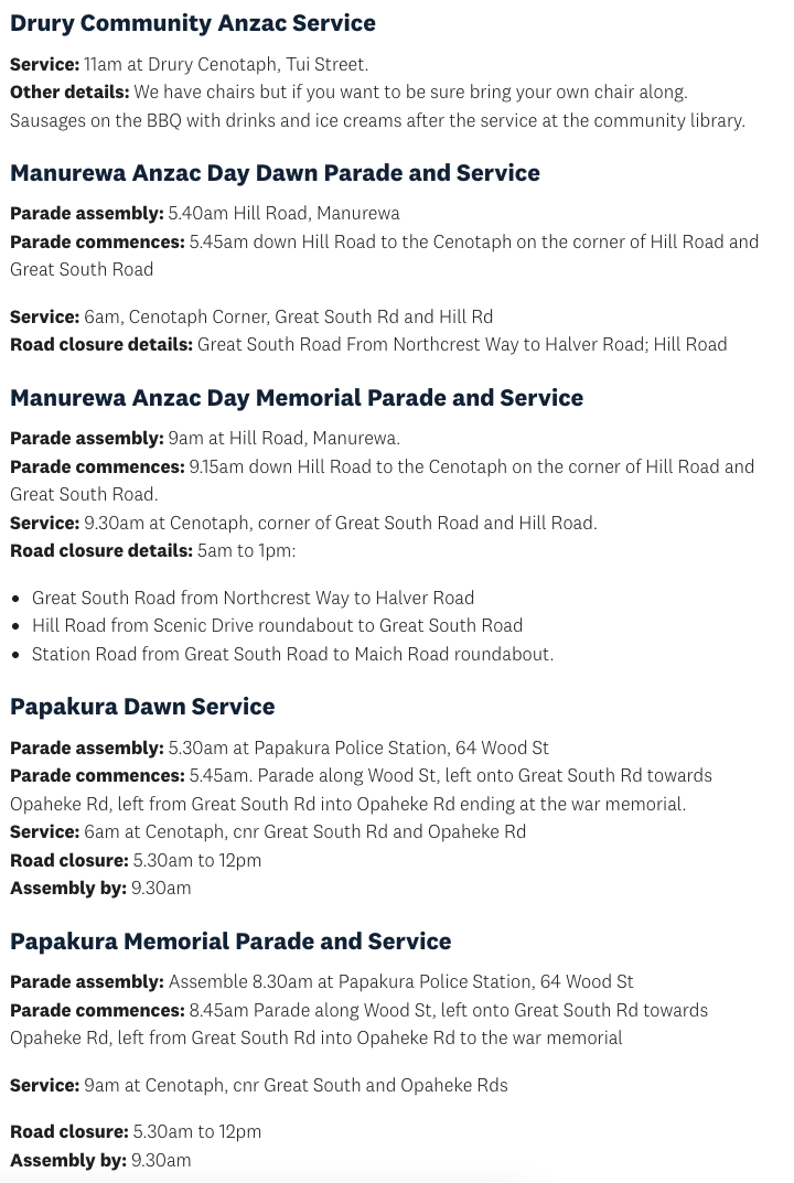 We have Poppies available in our school office if you would like to donate to the Poppy Appeal. Below is a list of sevices that will be held on ANZAC Day this Saturday 25 April.