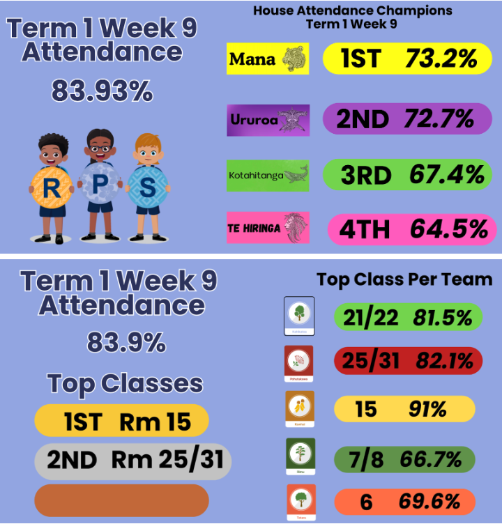 Our house with the highest regular attendance for the term was Ururoa. Well done, Ururoa! The challenge is now on for the other houses as we head into Term 2.